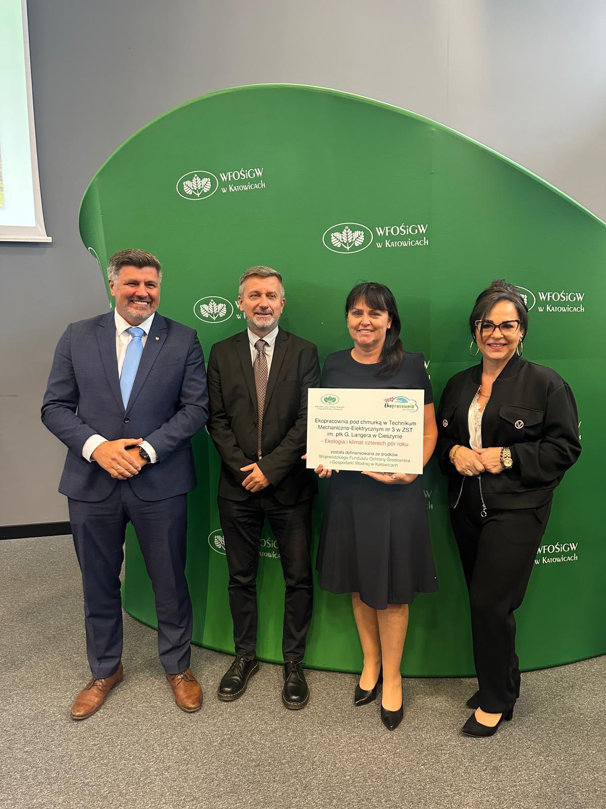 W uroczystości wręczenia umów w Katowicach uczestniczyli Dyrektor Zespołu Szkół Technicznych pani Bożena Cholewa oraz Naczelnik Wydziału Edukacji Starostwa Powiatowego pan Michał Rajwa, wspierając nasze działania na rzecz nowoczesnej i ekologicznej edukacji.☘️
